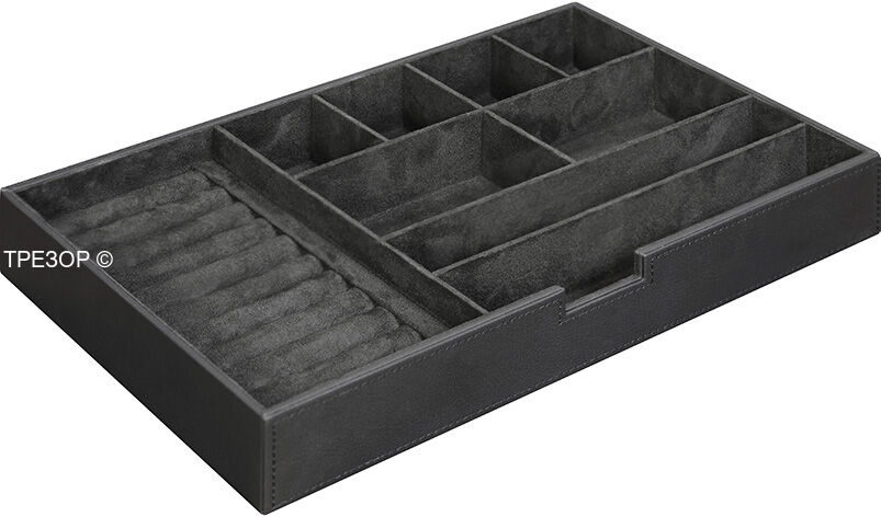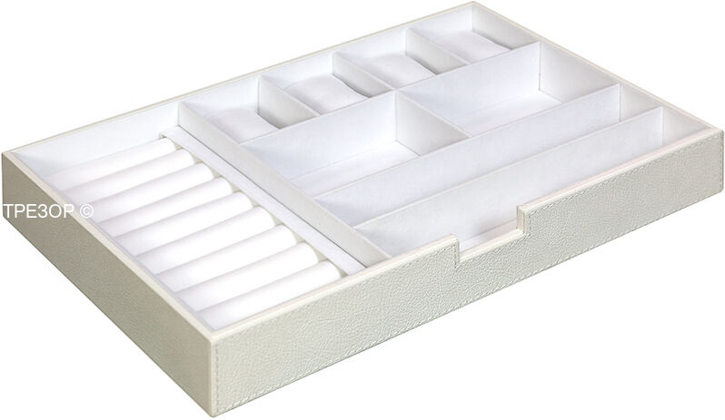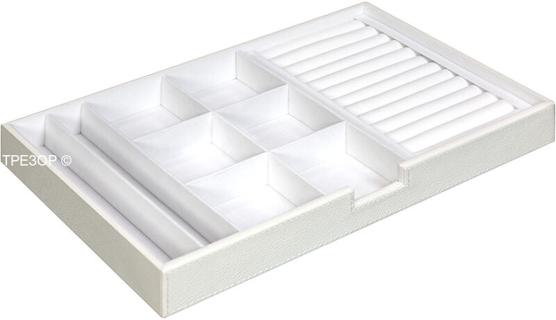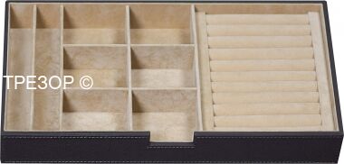 Ювелирный модуль на 2 ящика полностью в кожаной отделке разработан для отдельного хранения в гардеробной или туалетной комнате, с последующей установкой на штатную полку в сейф.