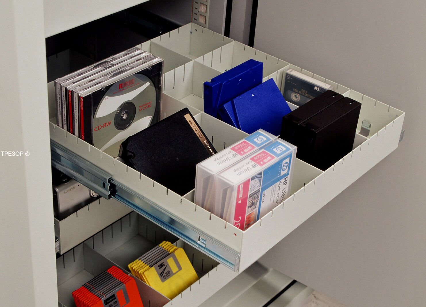 Универсальный лоток для хранения информационных носителей. Предназначен для установки в Дата сейфы Diplomat моделей 825 (DT2825), 120 (DT2120), 130 (DT2130), 200 (DT2200) и 300 (DT2300). В скобках указаны модели data сейфов по корейской классификации. Комплектуется пластиковыми переставляемыми разделителями.