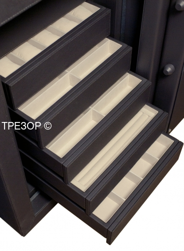 Консервативно брутальные английские сейфы SMP тоже могут выглядеть элегантно и эксклюзивно. Специальные пакеты как наружной так и внутренней отделки позволяют превратить отпугивающего грабителей своим видом монстра в элегантный элемент интерьера. Эксклюзивная кожа с ручной прострочкой придаст неприступной крепости непередаваемый шарм индивидуальности. Возможности внутренней трансформации практически безграничны: ювелирные вставки, лотки для украшений, механизмы для автоподзавода часов. Каждый элемент интерьера разрабатывается индивидуально. В итоге Вы получаете действительно первоклассный сейф с непревзойдённой защищённостью, красивый и удобный, а не полированную шкатулку от неизвестного производителя под вывеской раскрученного автомобильного или ещё какого бренда.