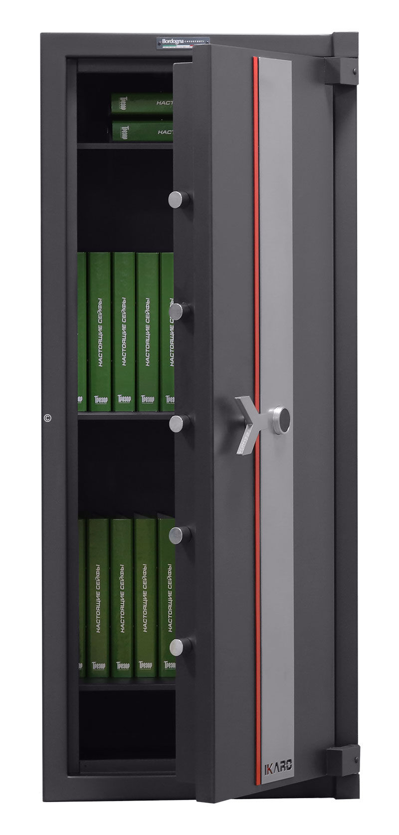 Серия Bordogna IKARO является самой прочной среди сейфов с тем же классом. В первую очередь потому, что разрабатывалась, испытывалась и сертифицировалась под последнее расширение европейского стандарта, так называемую группу инструмента T2. Недаром официальным слоганом семейства, названного в честь легендарного древнегреческого героя, является "simply stronger", то есть "просто прочнее".