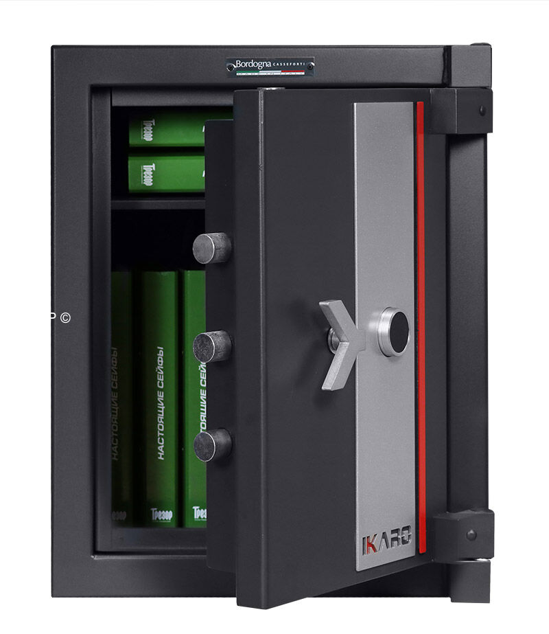 Сейф из нового семейства взломостойких сейфов второго класса Bordogna IKARO 62C. Версия с ключевым замком. По заказу может быть оснащён вторым электронным или механическим кодовым