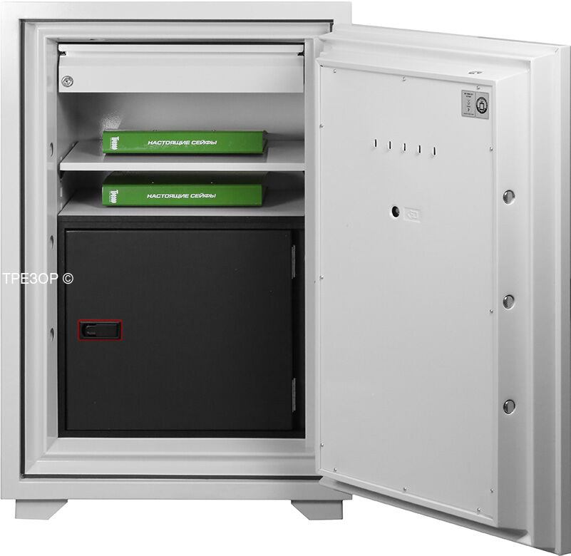Огнестойкий комбинированный сейф с дата-вставкой Diplomat 100DE (DC3100EH): класс защиты от пожара 120P / 90DIS, что гарантирует сохранение температуры в течение 120 минут в сейфе не выше 170°C и не выше 30°C внутри дата-вставки (при максимальной температуре пожара 1010°C).