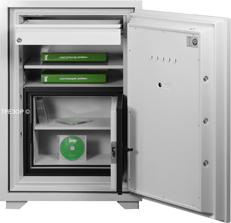 Офисный сейф с сертифицированной огнестойкостью 120 минут рассчитан на хранение документов формата А4 в папках типа Корона, а также других типов документов. Отличается от стандартной версии внутренним отсеком для безопасного хранения магнитных носителей (Data-Insert). Благодаря новой серии огнестойких сейфов Diplomat Media DC3000 в одном объеме удобно хранить разные типы носителей информации: в одной секции бумажные носители, в другой магнитные (диски, флешки, ленты и пр.).