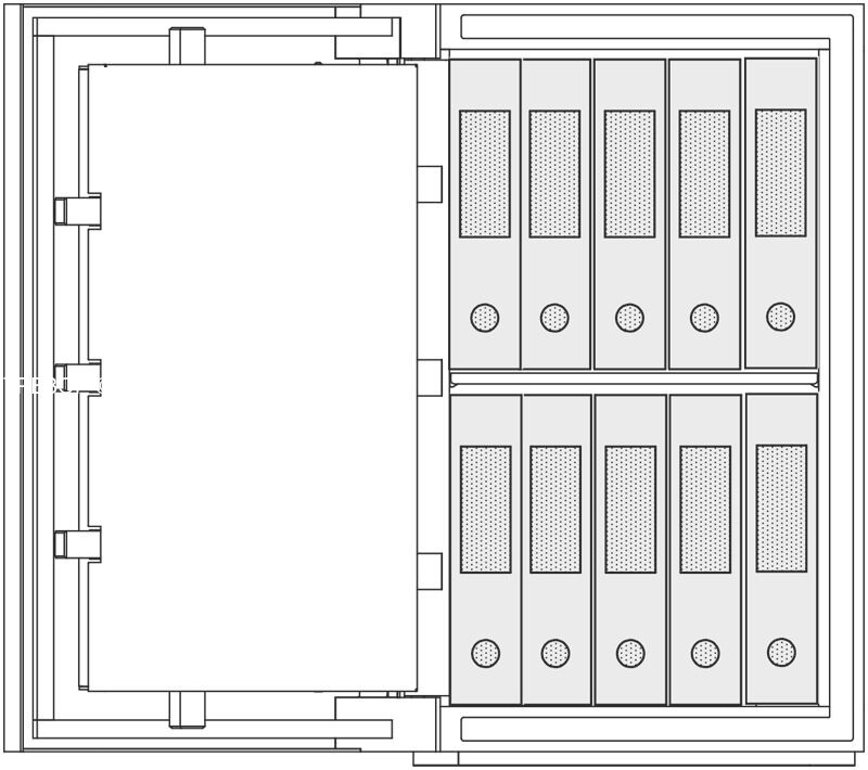 Левосторонний сейф белого цвета Brixia Tre 4 — самый высокий при компактных размерах площади и удобно размещается в гардеробной, не имеет никаких выступающих элементов. Внутри, по умолчанию, есть 2 стальные полки с выбором по их размещению по высоте. Дополнительно можно заказать стандартные модули для хранения часов и украшений, а также индивидуальный интерьер для частичного размещения в сейфе или полноразмерную вставку по Вашему эскизу.