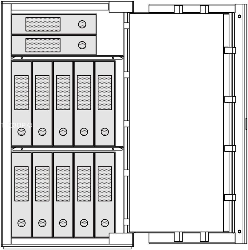 Сейфу Brixia 5 можно спокойно доверить не только важные документы, но и ценности: продуманный объем рассчитан на 2 ряда папок А4 типа Корона и пространство для хранения часов и ювелирных украшений. Все подробности в буклете завода в прикреплённых файлах.
