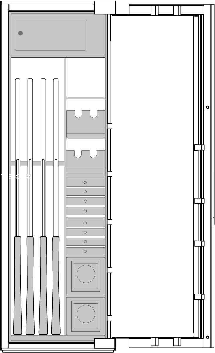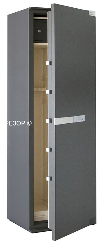 Подробнее про возможности Вы можете прочитать в нашем обзоре этой модели. Заметим только, что в добавление к уже традиционным белому и чёрному экстерьеру теперь добавился и структурированный серый. Данный сейф на фотографиях представлен с премиум оружейным интерьером светло бежевого цвета.