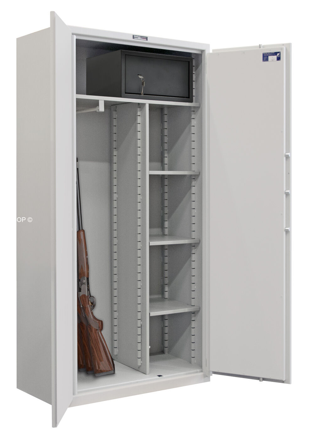 Для всех моделей имеется большое количество дополнительных интерьерных возможностей, от хранения оружия до шуб (как показано на фотографиях и поставляется по заказу. Стандартная комплектация включает только полки) это основные особенности, которые привлекают покупателей к данному архивному сейфы.