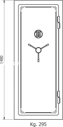 Сейф предназначен для хранения как оружия, так и ценностей; отличается прочностью конструкции, внутренней отделкой из искусственной замши цвета шампанского, автоматической системой запирания, штурвалом с золотым покрытием.