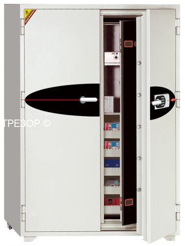 Внутри сейф представляет собой 2 полностью независимых отделения, аналогичных модели 200DTE. Вмещает (по информации производителя) до 3944 DAT или 1880 CD или 1254 LTO. Максимальная вместимость составляет 34 универсальных ящика, базовая заводская комплектация (изображена на фотографиях) состоит из 4-х полок и 10 ящиков (поставляется под заказ). Данная спецификация является складской позицией, оптимизированной для хранения лент LTO и включает 30 ящиков.