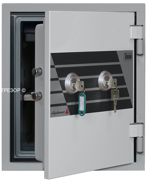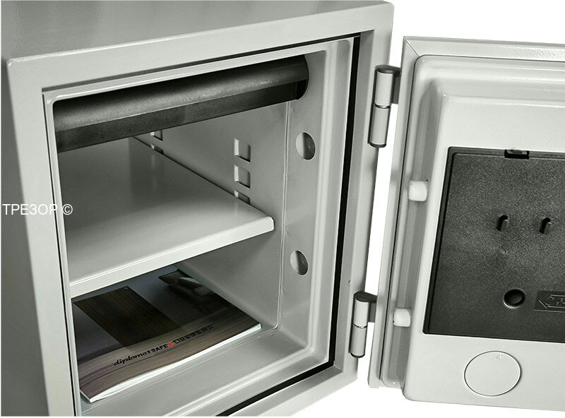 Сейфы Дипломат — обладают высокой огнестойкостью (сертифицирован на порог огнестойкости в 60 минут) и предназначены прежде всего для хранения бумажных документов от несанкционированного доступа. Внутреннее пространство удобно для хранения документов формата А4 как вертикально, так и горизонтально, разделено выдвигаемым лотком для хранения мелких предметов и полкой.