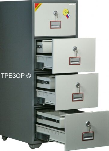 Прочная конструкция выдвигающихся ящиков, каждый из которых рассчитан на нагрузку до 50 кг, первоклассные материалы и современный внешний вид – гарантия того, что картотечный огнестойкий сейф Diplomat будет служить компании долгие годы. Все ящики полностью изолированы друг от друга и, если по недосмотру, один ящик остался во время пожара открытым, документы в остальных не пострадают.