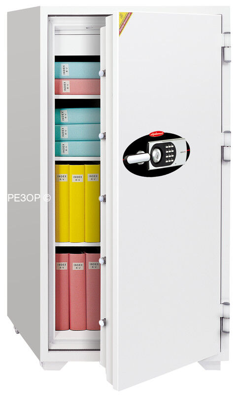 Классический огнестойкий сейф модели MO130EK производства южно-корейской компании Diplomat Safe обеспечивает лучшую в своём классе защиту от огня. Сертифицирован в Европе на класс огнестойкости 120P (2 часа защиты бумажных носителей). Непревзойдённый уровень качества. Предназначен для использования в офисе, оснащён колёсиками для облегчения перемещения. Оснащён ключевым и передовым электронным замком EDL77, версии с биометрическим замком и механикой поставляются только под заказ.