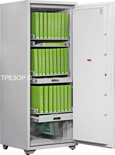 Теперь работа с надёжно защищёнными от огня документами станет намного более комфортной. Уже не надо нырять вглубь сейфа за далеко запавшей папкой и метаться от сейфа для папок к сейфу для подвесных файлов, перебегая затем к картотечному сейфу с трудовыми книжками и после кланяться сейфу для магнитных носителей. Серия Diplomat PDH - всё необходимое в одном флаконе!