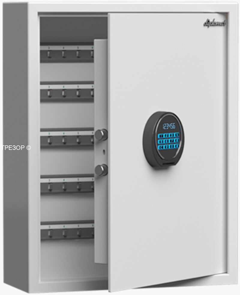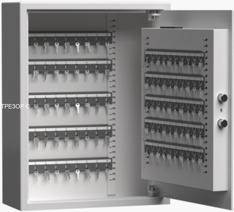 Сейф предназначен для хранения ключей (до 100 штук). Это удобное и надежное решение для офисов, автоцентров, гостиниц и банков, гос.учреждений. Рекомендуется также для использования в загородном доме и городской квартире. Прочная стальная конструкция: толщина стенок корпуса 2 мм / двери 3 мм. Планки с крючками для ключей входят в комплект поставки (см. фото).