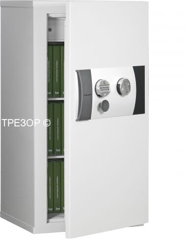 Удобный сейф для тех, кому есть что хранить. Разумный размер, позволяющий разместить 3 ряда папок или крупных коробок, отдельное запираемое отделение высотой 150 мм. Вместо ряда папок замечательно умещается необходимое количество выдвигаемых ящиков со вставками для драгоценностей, монет или модуль с механизмами для часов (watch-winders), да и любые из производимых для сейфов KASO или KEEPS внутренних аксессуаров. Что бы Вы туда не положили, всё останется в сохранности — сейф KASO E5-330 сертифицирован на защиту от взлома на самый высокий для серийных сейфов класс 5 и защиту от огня в 60 минут по европейским стандартам, дальше уже хранилища. Масса сейфа 850 кг, что позволяет установить его в любом помещении — равномерно распределенная нагрузка на площадь до 4х квадратных метров вокруг сейфа дает всего около 200 кг/1м2. Для удобства использования сейф может быть заказан с открывающейся налево дверью. Несмотря на кажущийся солидным вес, любой сейф легче одной тонны обязан крепиться и для этого в днище стандартно заготовлено специальное отверстие, и возможно дополнительно заказать ещё одно для крепления к стене здания.