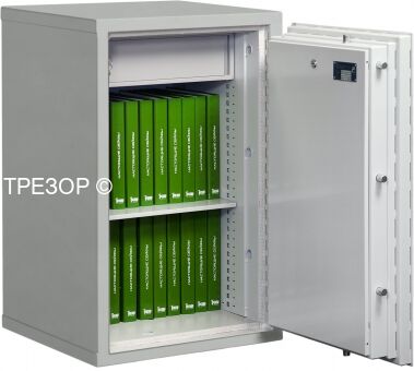 Оснащён электронным замком более высокого, чем полагается по стандарту, класса. Для корректного планировании установки сейфа скачайте полные габаритные размеры. По отдельному заказу возможно левостороннее открывание.