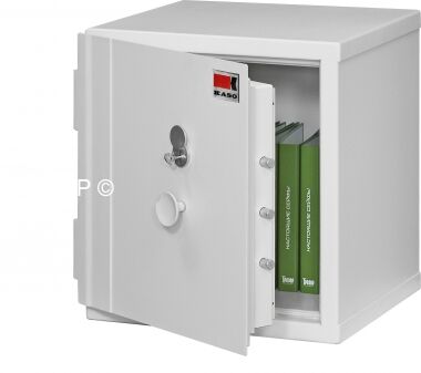 Сейф KASO E3-308L (левостороннее открыванием) оснащен полками расчитанными на хранение документов в папках A4 (количеством до 8 штук) и запираемым ящиком высотой 150 мм. Сейфы 3-го европейского класса защиты оснащаются ключевым замком Mauer с возможностью перекодирования. На заказ возможна окраска в любой цвет из палитры RAL.