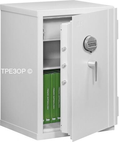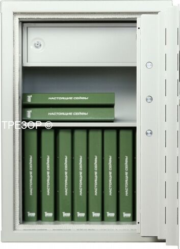 Сейф оснащен одной полкой, и запираемым ящиком высотой 150 мм. Данная версия укомплектована комфортным электронным замком с повышенной секретностью. Существует версия с левосторонним открыванием (опция за доплату).