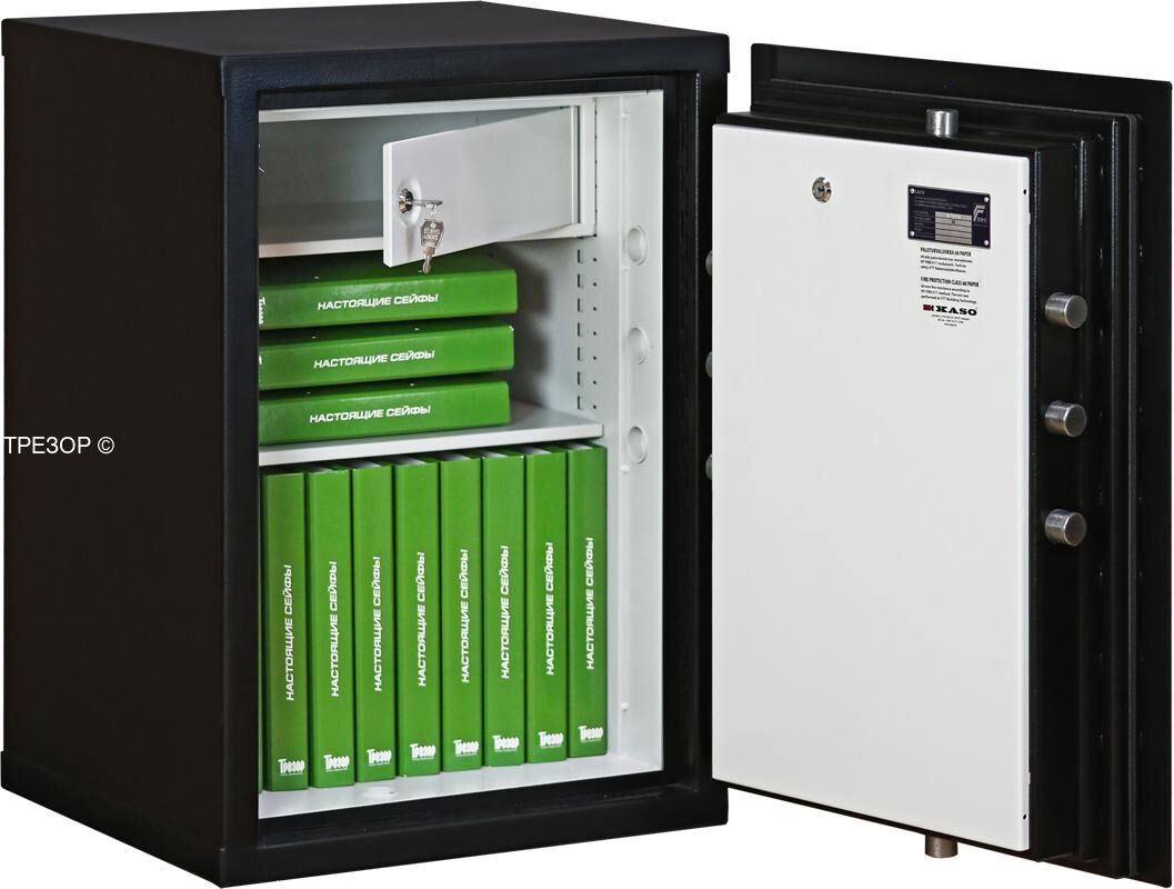 Сейфы серии KASO PTK 300 предназначены для надежного хранения ценной документации. Благодаря своим размерам и небольшому весу, сейф легко размещается в любом помещении. Модель E3-309 рассчитана на хранение внутри двух рядов папок формата A4. Базовое оснащение включает в себя одну полку и запираемый ящик высотой 150 мм.