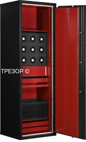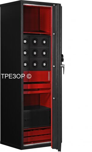 Сейф KASO PTK E3 350E в специальном исполнении. Выглядя снаружи как обычный, ничем не примечательным=й офисный сейф, внутри он оборудован таким образом, чтобы удовлетворить все потребности своего хозяина.